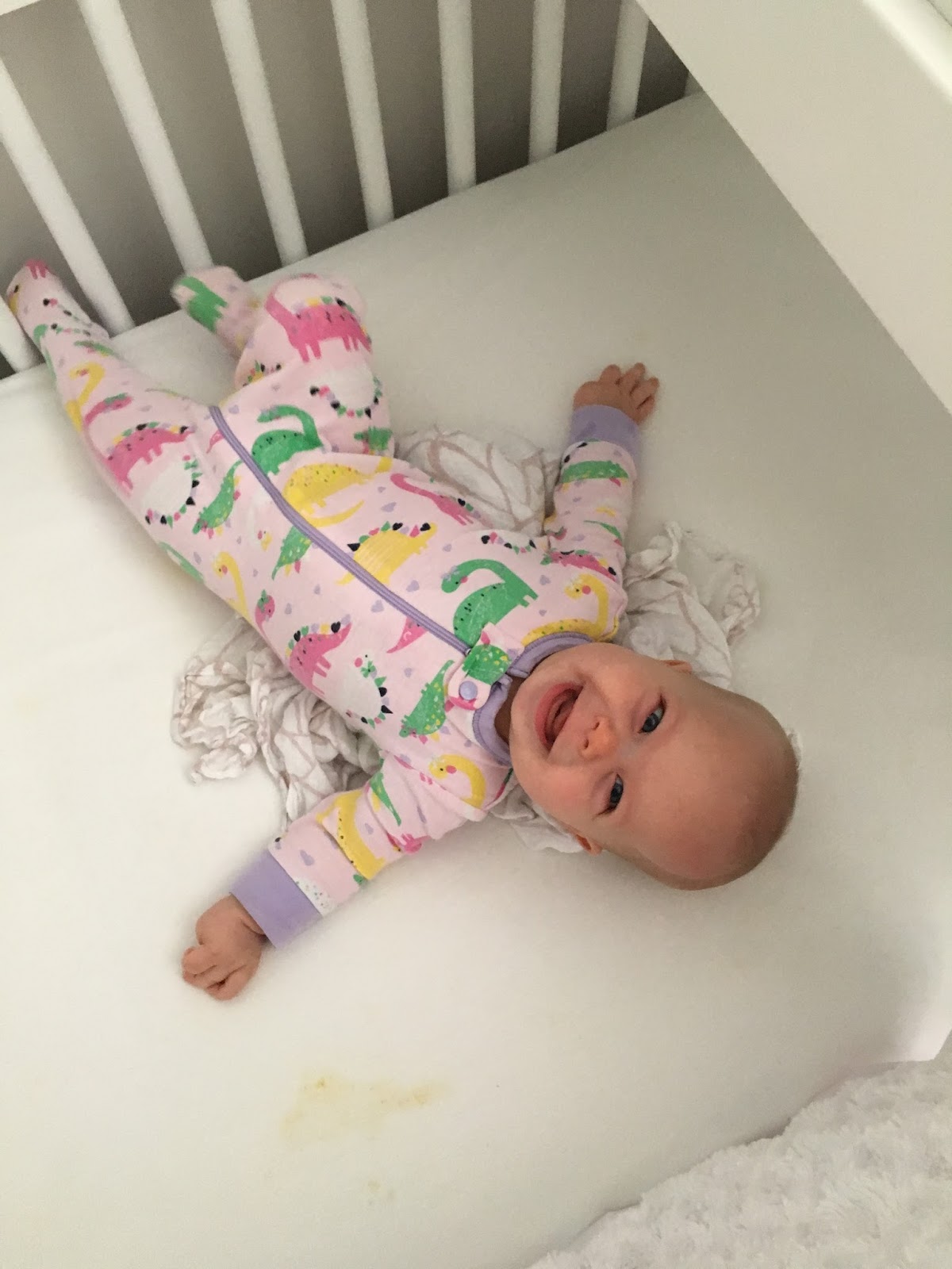 -I love to watch her crawl because sometimes she'll do it great, then she'll use her head as another hand to support her while she crawls (resulting in her head sliding across the floor haha).